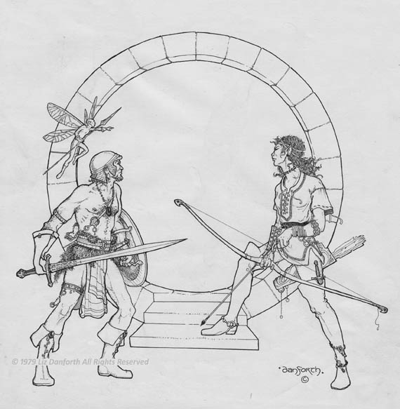 This piece of art was originally done for the Tunnels & Trolls Fifth Edition rules, and was (as I recall) one of the last pieces to be drawn. I’d done the lengthy rewriting and editing, and the intrepid Pat Mueller was transforming everything into a finished book. She and I laid out pages, and if there was a nice blank spot, I did something to fill that space referring to the topic being discussed there. Which makes the inside back cover art a little different — it wasn’t there to illustrate anything in particular.